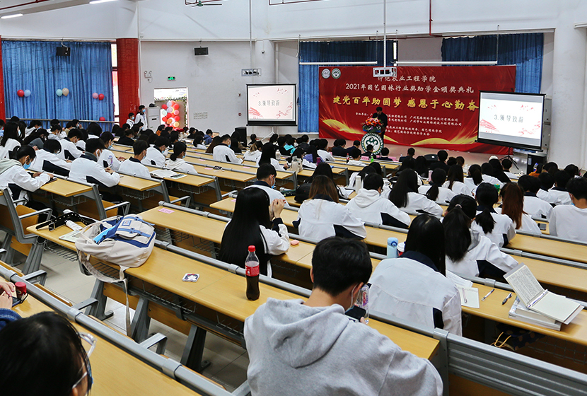 12月23日下午,以“建党百年助圆梦 感恩于心勤奋斗”为主题的仲恺农业工程学院2021年园艺园林行业奖助学金颁奖典礼在仲恺白云校区D1小礼堂举行。金年会娱乐官网首页下载品牌经理翁桂涛,生态景观所三所所长、主创设计师韦怡凯出席参加活动并依次为第八届“金年会娱乐官网首页下载杯”园林景观设计大赛获奖的十一支队伍代表颁奖并合影留念。